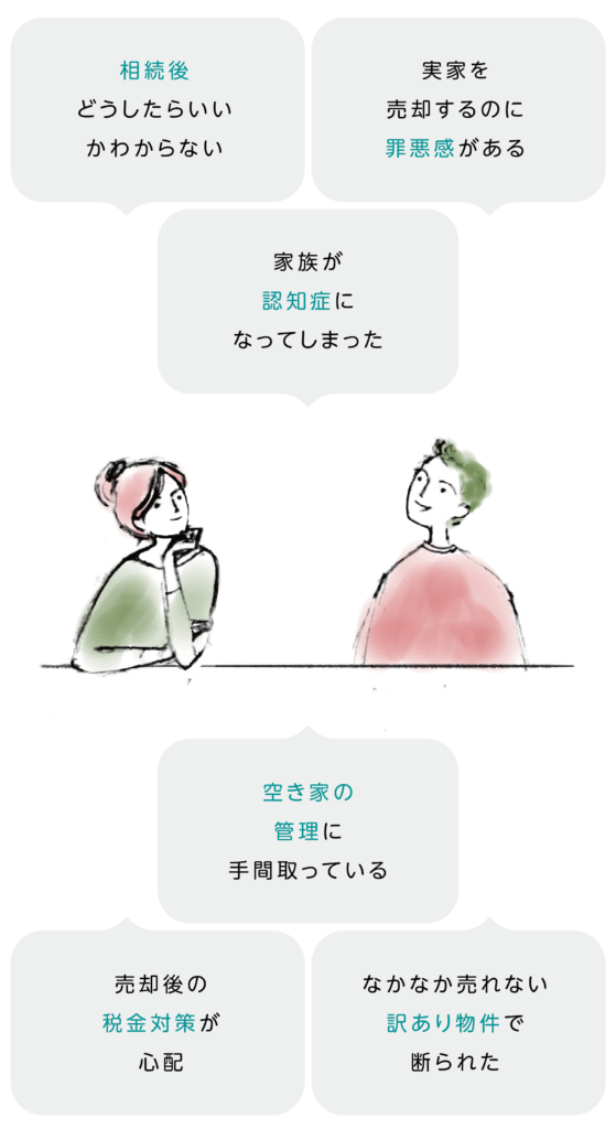 相続不動産の相談も年々増加しております。何から考えれば良いか分からず、⼿探りで情報を集めている⽅が多く、「何からはじめれば良いのか」「いくらで売れるのか」「引き渡しまでの流れ」や「信頼できる担当者に出逢えるのか」「⼤⼿なら安⼼なのか」等多くのご不安を抱えていらっしゃるかと思います。
